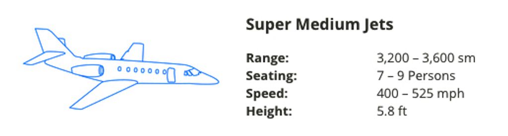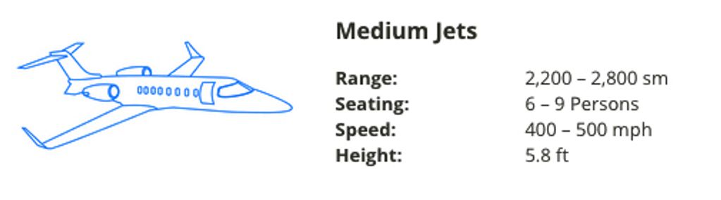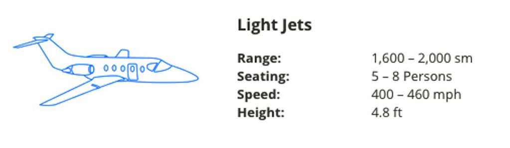 Light jets are appropriate for six to eight passengers; while mid-size jets are best suited for longer flights with up to eight passengers as well. The largest is the heavy jet, for up to 16 passengers and includes a full service galley, cabin attendant and many other amenities.